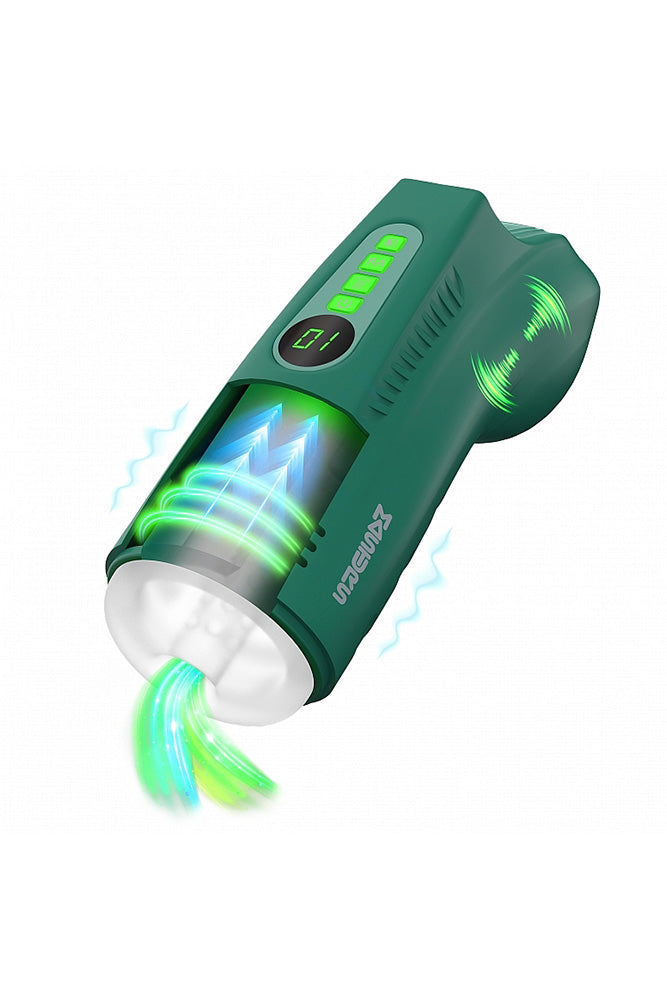- Multi-function masturbator with sucking, vibrating, and voicing features