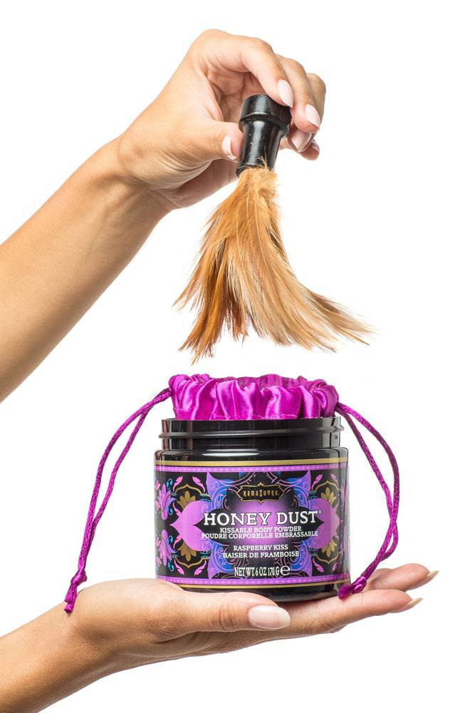 Directions: Lightly dip the feather into the Honey Dust and stroke the soft feather across your lover's body.