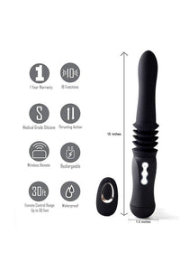 Activate vibration and thrusting together or play with one at a time using simple buttons on an LED lit interface or with an included remote.