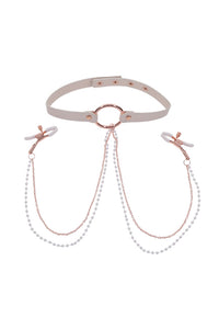 Sex & Mischief - Peaches 'N CreaMe - Collar With Nipple Clamps - Peach/Rose Gold